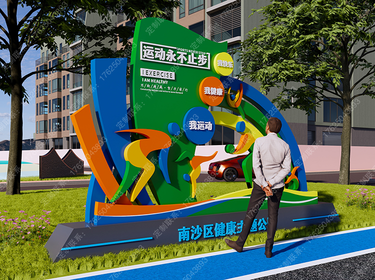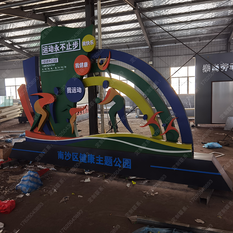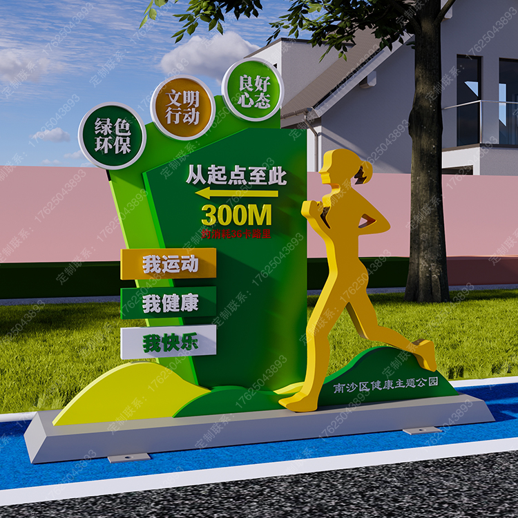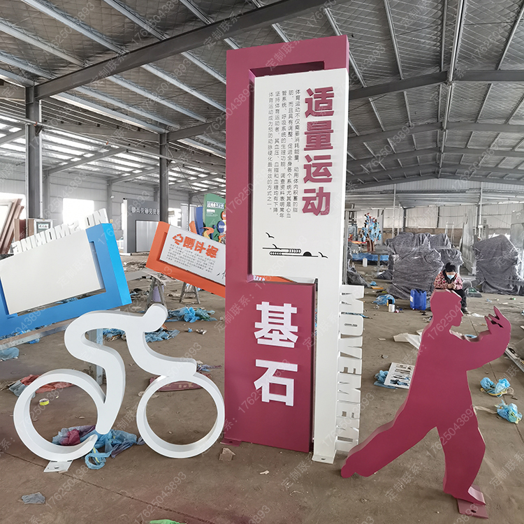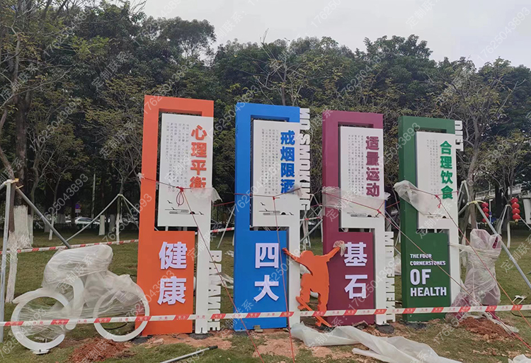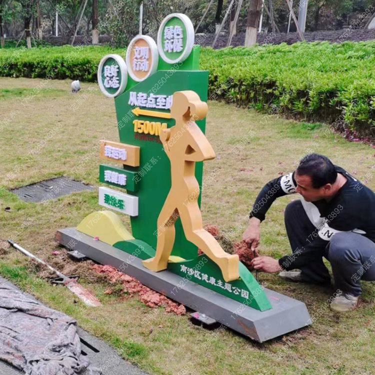 健康運(yùn)動(dòng)宣傳標(biāo)識(shí)標(biāo)牌健身步道廣告牌四大基石景觀小品宣傳牌